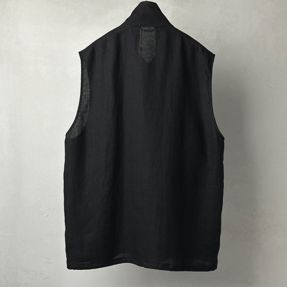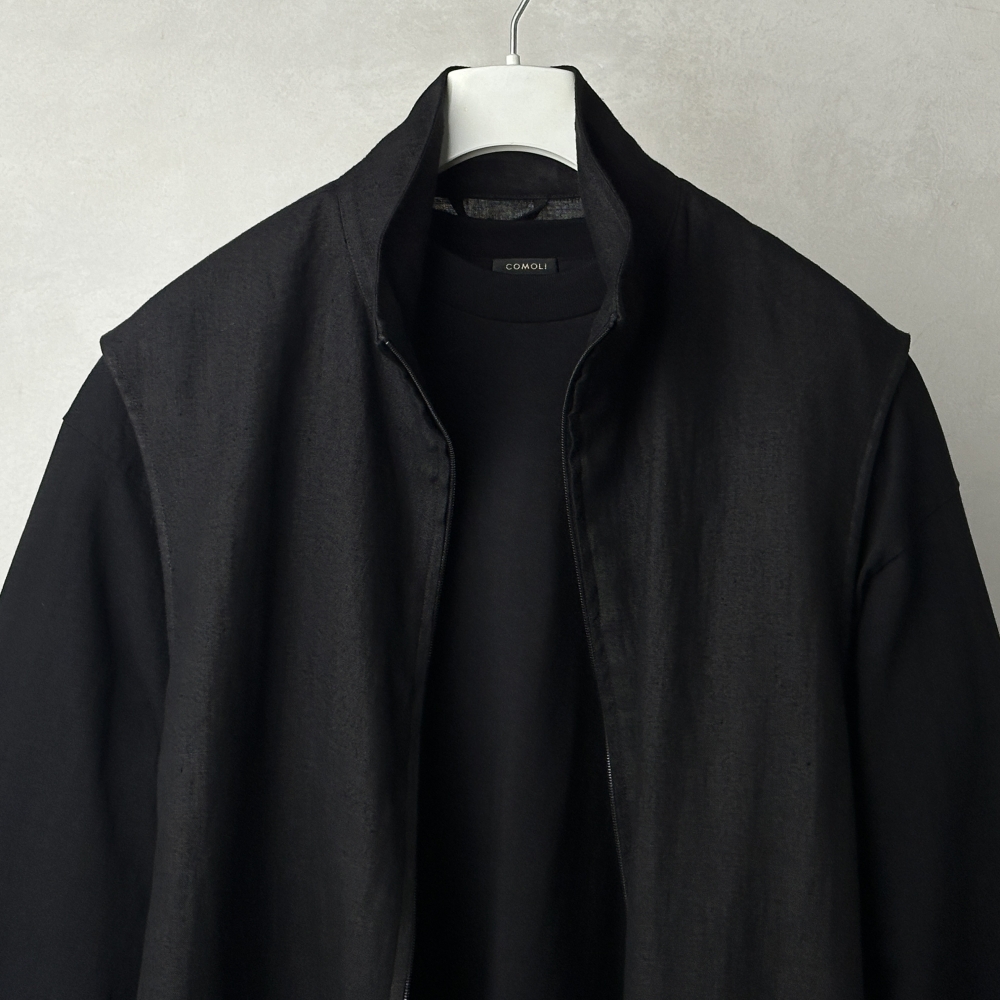 上質な麻素材の滑らかさが印象的なジップベスト。ラインナップの一翼を担うカナパシリーズに味のある一型が加わります。やや大きめのバランスで羽織りやすく、前身頃裏にコットンを配して前開きの見栄えにも配慮。サープラスTシャツやコットンジャージ長袖Tシャツとのレイヤリングに、肌寒さの残る季節にはインナーに、さらっと着こなしの幅を広げてくれます。両サイドにハンドポケットを配し、生地のムードに合わせた控えめなriri zipが表情を引き締め、裾全体を絞る際にややコツを要する片側仕様のドローコードもどこか愛着が湧く仕上がり。麻素材ながら節が少なく皺が残りにくい特性を持ち、軽やかで適度な張りのある生地がこなれたシルエットを形成。着用するにつれ張り感も穏やかに、ほんのりと毛羽立ちを伴う柔らかな風合いへと馴染んでいきます。からりと快適な肌触りで吸水性と保温性に優れ、梅雨はもちろん春先から秋口までカバーする汎用性の高さも魅力。洋服が好きな方にはたまらない素材の深みを感じさせてくれそうです。