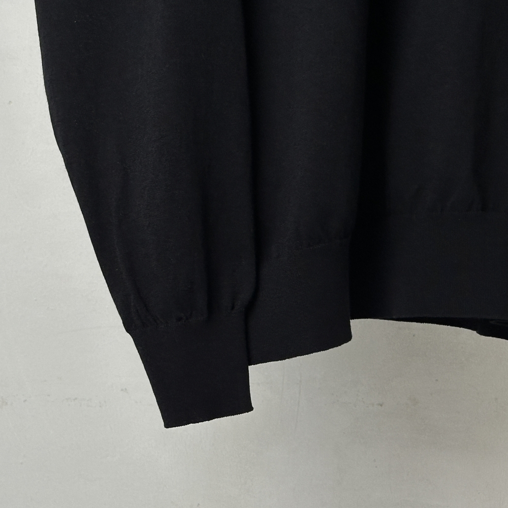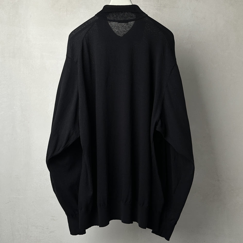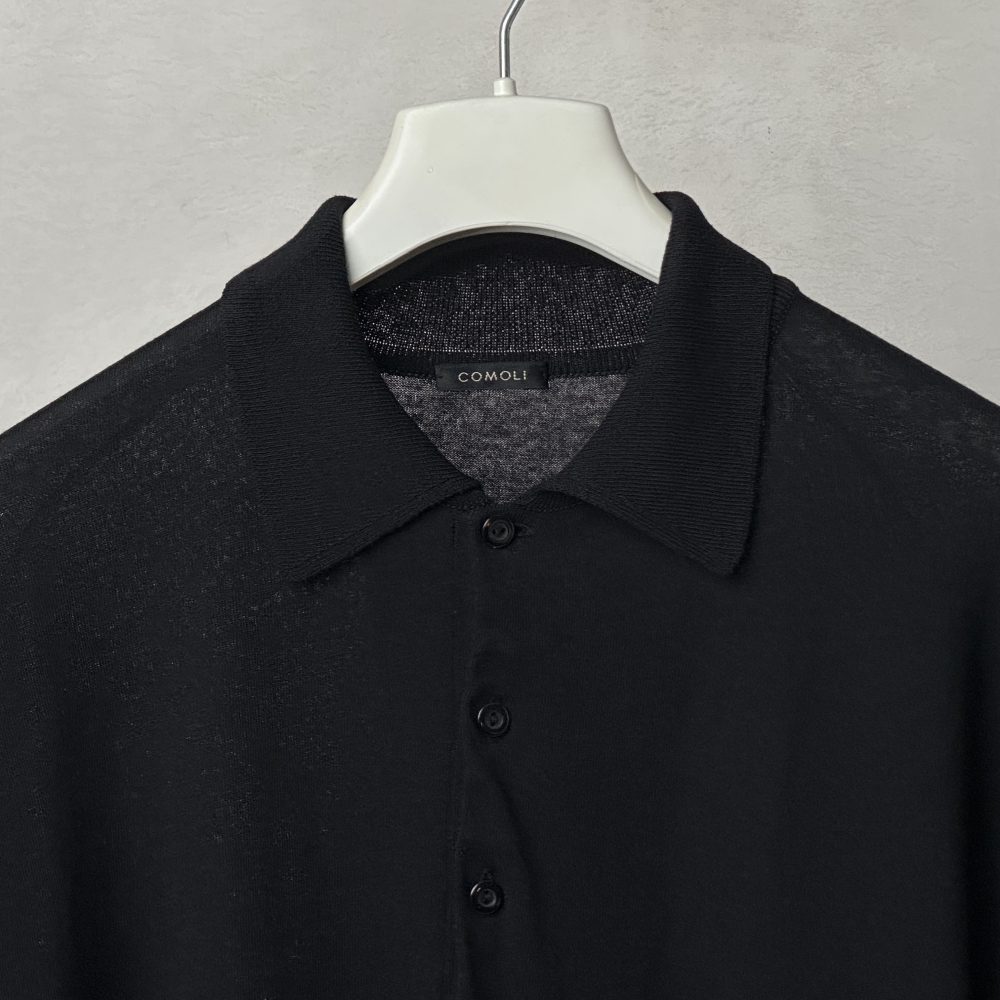 18Gで軽くドライに仕上げたコットン素材のニットポロ。整えすぎず僅かにムラを残した編み地は程良く抜けを感じさせ、シンプルながらムードのある仕上がりに。一枚でも雰囲気を演出できる使い勝手の良さ、袖をまくっても様になる気軽さが魅力で、コットンニット特有のさらりとした風通りの良さと肌触りの快適さを体感できます。やや小ぶりでムードのある襟元はボタンを止めてスマートな着こなしにも、表情を変えてラフなニュアンスにも。今期展開の様々なパンツに合わせて幅広くスタイリングできるアイテムです。
