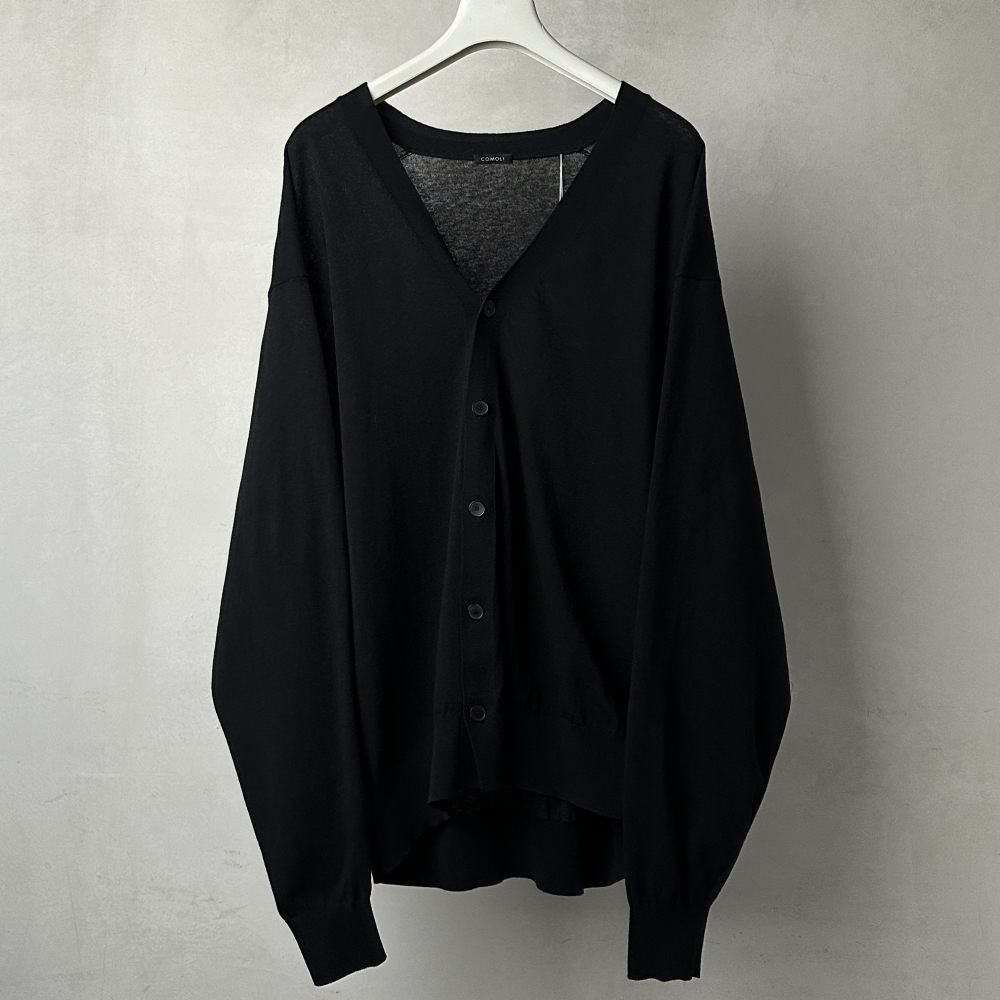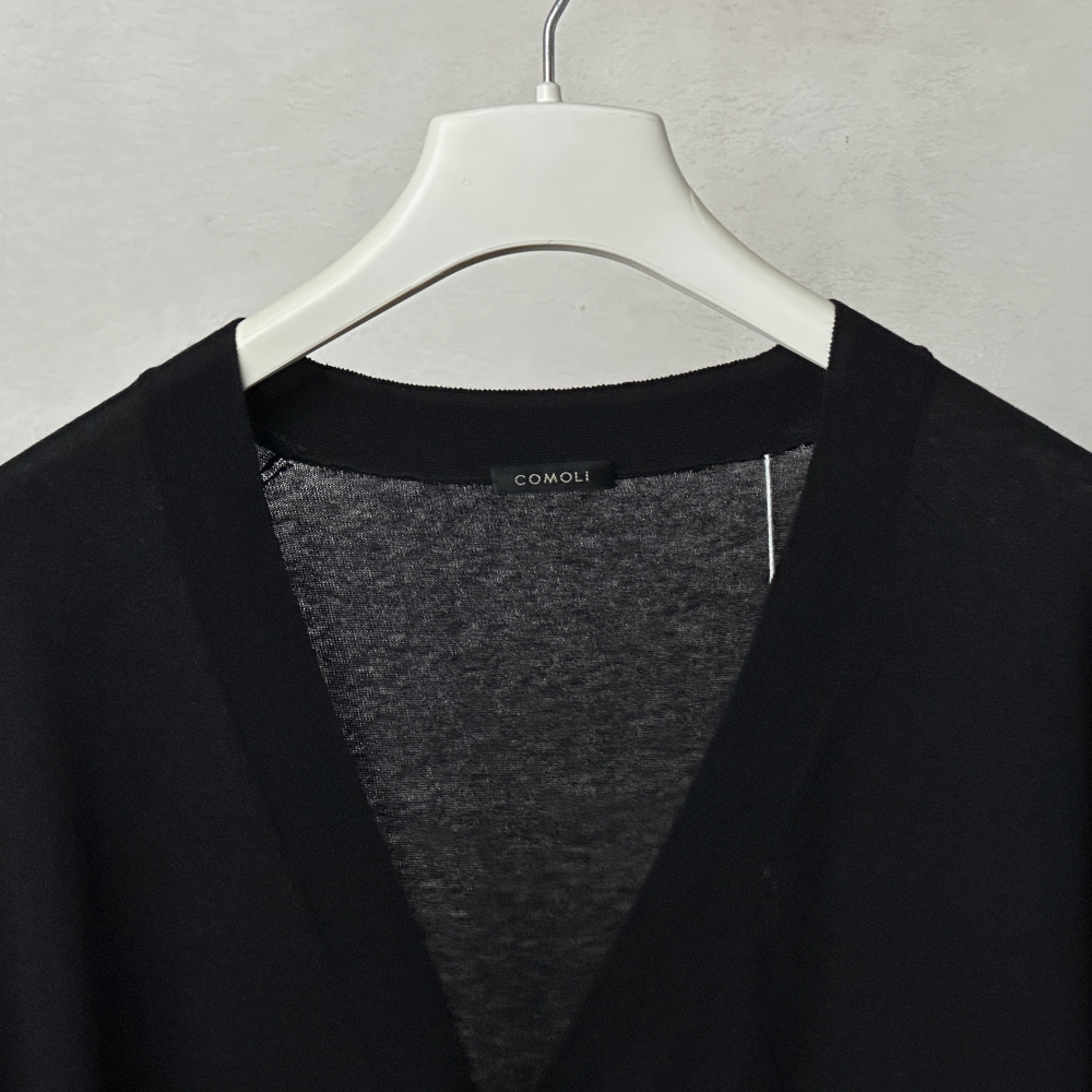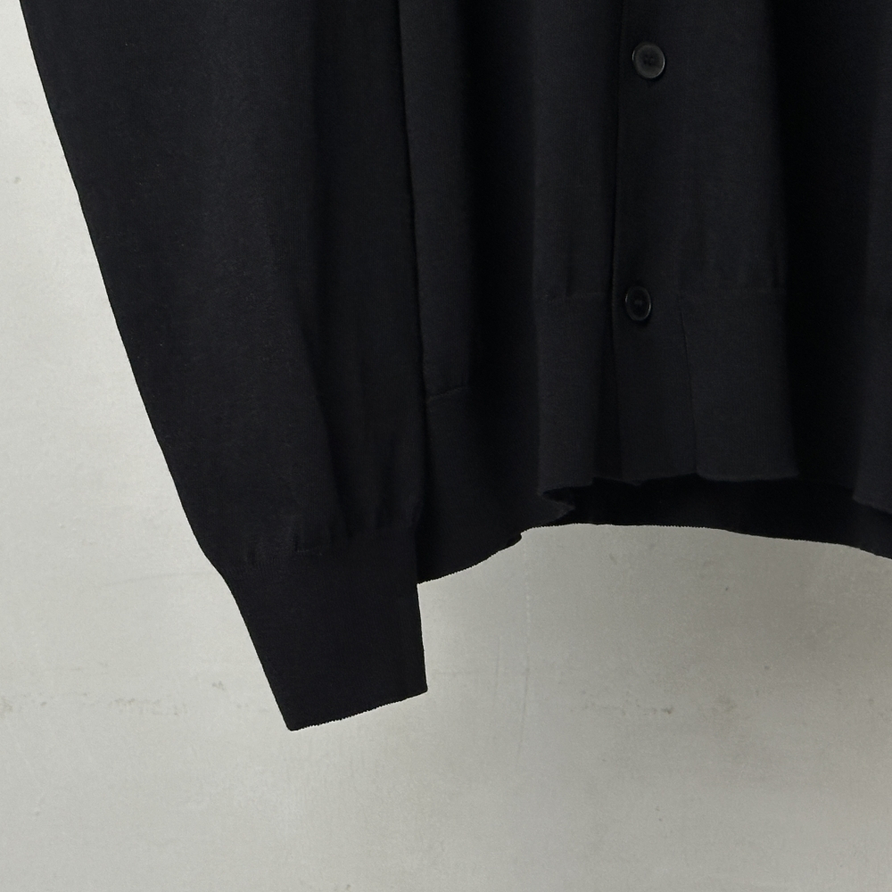 18Gで軽くドライに仕上げたコットン素材のVネックカーディガン。整えすぎず僅かにムラを残した編み地は程良く抜けを感じさせ、シンプルながらムードのある仕上がりに。コットンニット特有のくたっと馴染む雰囲気がなんとも使い易く、さらりとした肌触りの快適さと風通りの良さを体感しながら、気候や室温に合わせてTシャツの上から羽織りたいアイテム。脱いでは腰に巻き、肩にさっと掛けても気恥ずかしさのない自然さで、幅広い着こなしを楽しめそうです。同素材のクルーネックニットとのアンサンブルも素敵です。