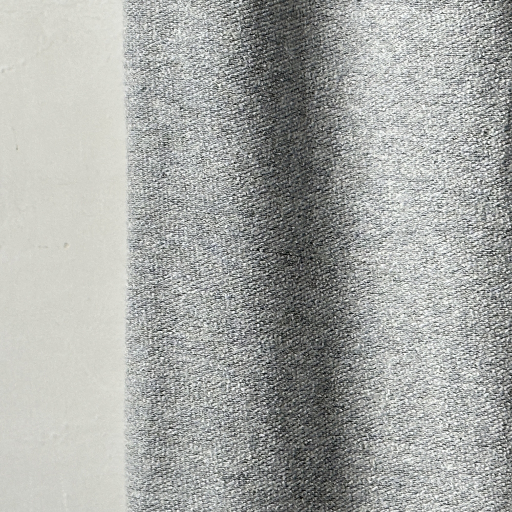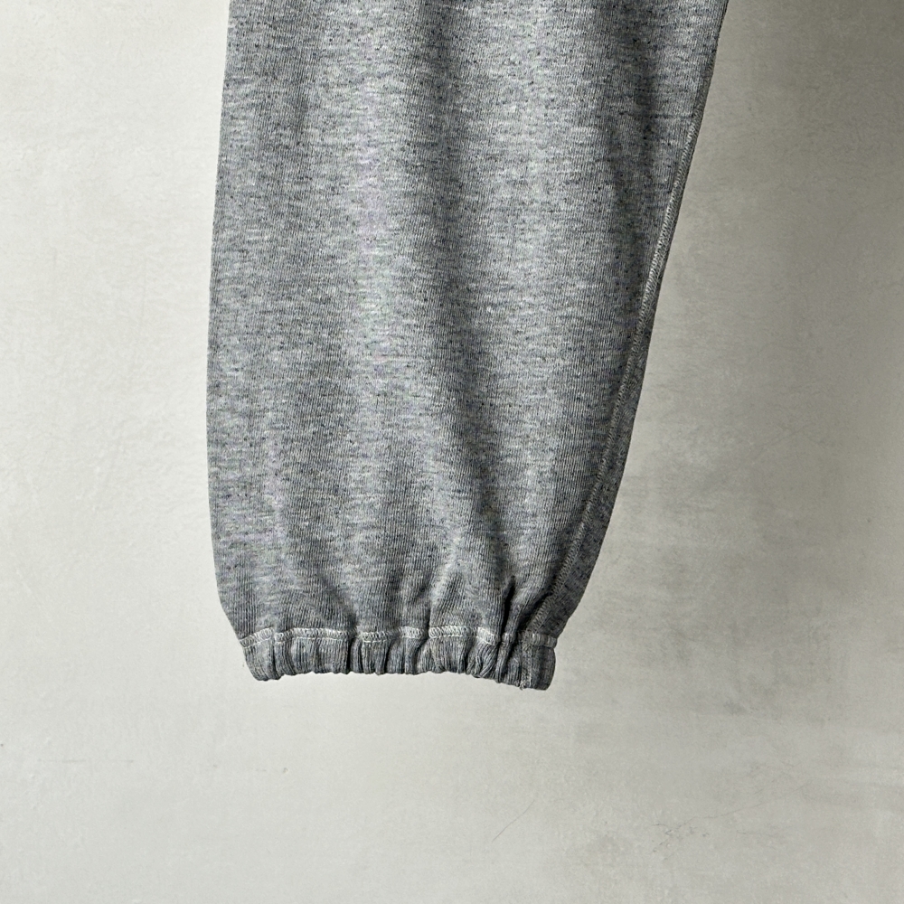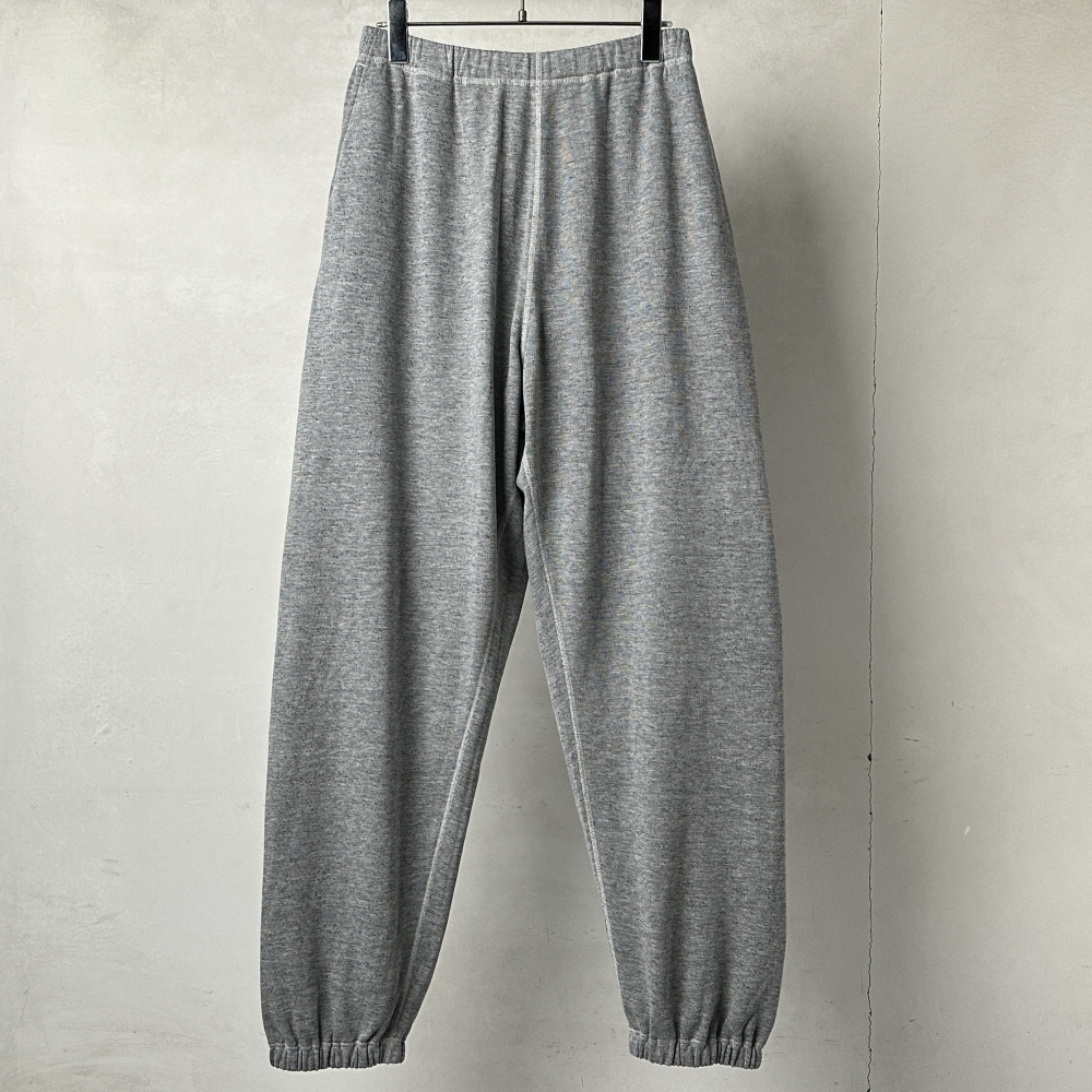 グレーカラーのスウェットパンツは久々の展開。クラシカルな濃班混じりの杢生地を採用し、着古したような粗さのある三種混紡の表地はかつて無いほど柔らかな生地感。甘編み気味に仕上げた裏地は肌に心地良く馴染み、コットンスウェットとは一味違う豊かなドレープ感も相まって、思わず心動かされる仕上がりです。LWコットンと同等の厚さで、かざせば透けるように柔らかく伸縮するしなやかな編み地。寒暖定まらぬ時期にふさわしい程良い保温性と通気性は、SSのみならずAWの気候にも十分対応できそうです。足元には COMOLI×GUIDI VS BACK ZIP BOOTS や FOOTWORKS ORIGINAL SANDALS を合わせて、リラックスしたムードの中に品性と力強さを感じさせるコーディネートを。