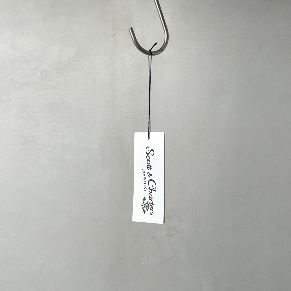 クラシックなスタイルのVネックカーディガンにはブラックに溶け込むチャコールカラーをラインナップ。スコットランドの老舗 SCOTT&CHARTERS との協業によってCOMOLI のコンサバティブな内面性が高い次元で表現されています。ブランドタグにも記されるアザミの実でブラッシングされることで起毛感としなやかさを得るスコティッシュカシミヤ。着ていくうちに少しずつ毛足が出て味わいを増し、コーディネートのトーンを整えてくれます。別注ではインラインアイテムよりやや袖を太くして着心地にゆとりを出し、フロントのボタンを小さく仕上げる細やかな仕事を見せています。いつの時代にも安心感を与えてくれるオーソドックスなカシミヤニットを時代感や気分に合わせて上手く着こなしていけたら、そんなデザイナーコメントが心に残っています。