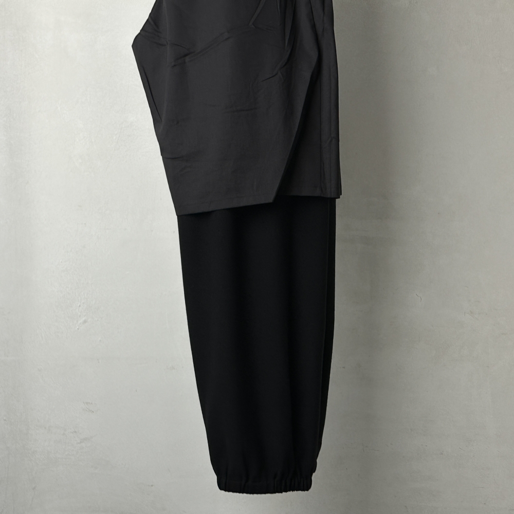 柔らかな肌触りと動きのある表情が印象的なウール素材のニットパンツ。度詰めで編み上げたウールの風合いに品性を感じるアイテム。半裏仕様となる今期は、コットンの裏地を膝下まで配することでシルエットを保持しやすく調整。ニット特有の自重で下に引っ張られるような感覚が抑えられ、頼り甲斐のある豊かな穿き心地に仕上がっています。 裾ゴム仕様によるドレープと裾溜まりの抑揚が存在感を発揮するCOMOLIのドローストリングパンツ。同生地のウールモックネックニットと組み合わせて一段とムードのあるセットアップに。コットン裏毛シリーズ同様、ボリュームのあるアウターを羽織るだけで奥行きあるスタイリングが楽しめます。