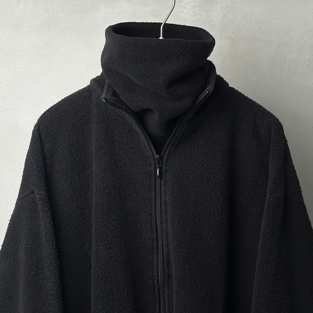 乾き色褪せた表情が印象的なジップジャケット。上質なシルクフリースに製品染と加工を施し、歳月を重ねたような趣の深いフェードブラックを表現。粗野な見た目に反して素材の軽やかさと肌触りの良さが際立つ、COMOLIらしく高い品性を感じさせる仕上がり。SSシーズンのカナパジップジャケットとは同型で、過去に展開されたシルクフリースとは同名ながらも全く新しい性格を有するアイテムとなっています。緩やかなリブの絞りと余裕を持たせた裾幅で落ち感のあるリラックスしたバランスを演出。サイドポケットのステッチにアウトドアウェアのムードを漂わせながら、片裾に備えられたドローコードで緩やかなフォルムの変化を楽しめます。独特の枯れた風合いはインナーやトップスとして様々なテイストに取り入れやすく、黒基調のコーディネートのアクセントとして全体に奥行きを与えてくれます。