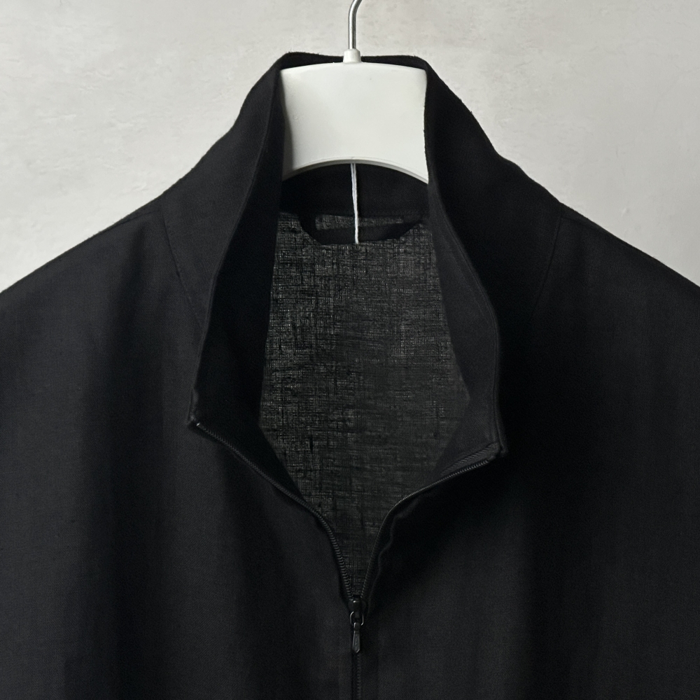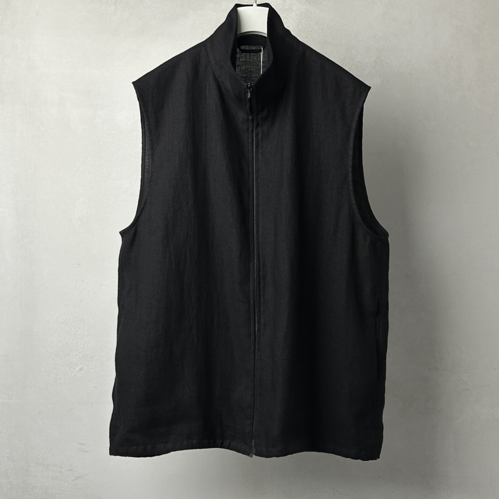 上質な麻素材の滑らかさが印象的なジップベスト。ラインナップの一翼を担うカナパシリーズに味のある一型が加わります。やや大きめのバランスで羽織りやすく、前身頃裏にコットンを配して前開きの見栄えにも配慮。サープラスTシャツやコットンジャージ長袖Tシャツとのレイヤリングに、肌寒さの残る季節にはインナーに、さらっと着こなしの幅を広げてくれます。両サイドにハンドポケットを配し、生地のムードに合わせた控えめなriri zipが表情を引き締め、裾全体を絞る際にややコツを要する片側仕様のドローコードもどこか愛着が湧く仕上がり。麻素材ながら節が少なく皺が残りにくい特性を持ち、軽やかで適度な張りのある生地がこなれたシルエットを形成。着用するにつれ張り感も穏やかに、ほんのりと毛羽立ちを伴う柔らかな風合いへと馴染んでいきます。からりと快適な肌触りで吸水性と保温性に優れ、梅雨はもちろん春先から秋口までカバーする汎用性の高さも魅力。洋服が好きな方にはたまらない素材の深みを感じさせてくれそうです。
