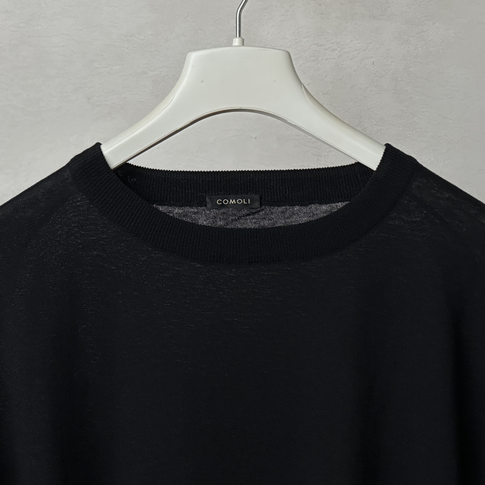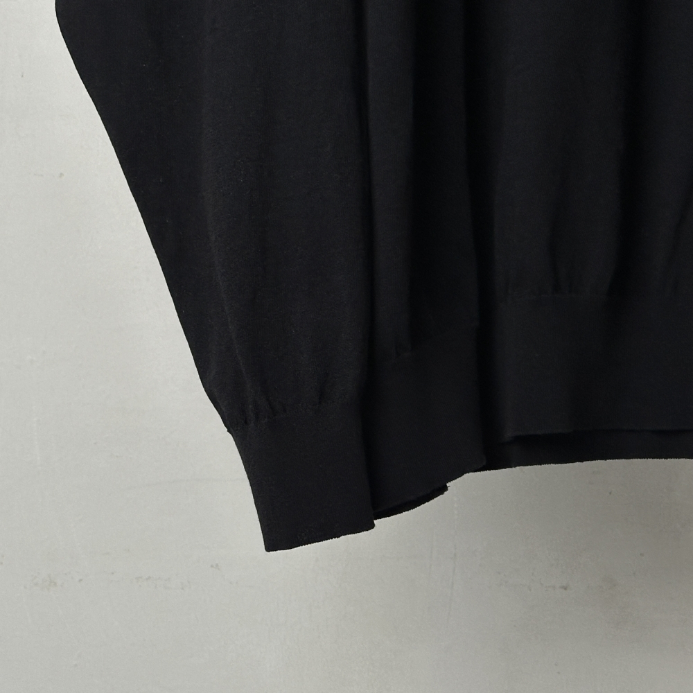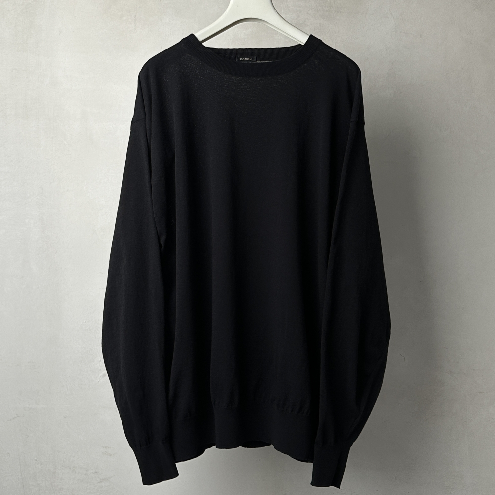 18Gで軽くドライに仕上げたコットン素材のクルーネックニット。整えすぎず僅かにムラを残した編み地は程良く抜けを感じさせ、シンプルながらムードのある仕上がりに。カットソーのように一枚でも雰囲気が出る使い勝手の良さ、袖をまくった姿も様になる気軽さが魅力で、コットンニット特有の風通りの良さ、さらりとした肌触りの快適さを体感できます。単品使いはもちろん、同素材のVネックカーディガンとのアンサンブルに、また腰に巻いて変化を出したりと着こなしに幅を出せる懐の広いアイテム。コットンダックジャケットのインナーとしても素敵に映えそうです。
