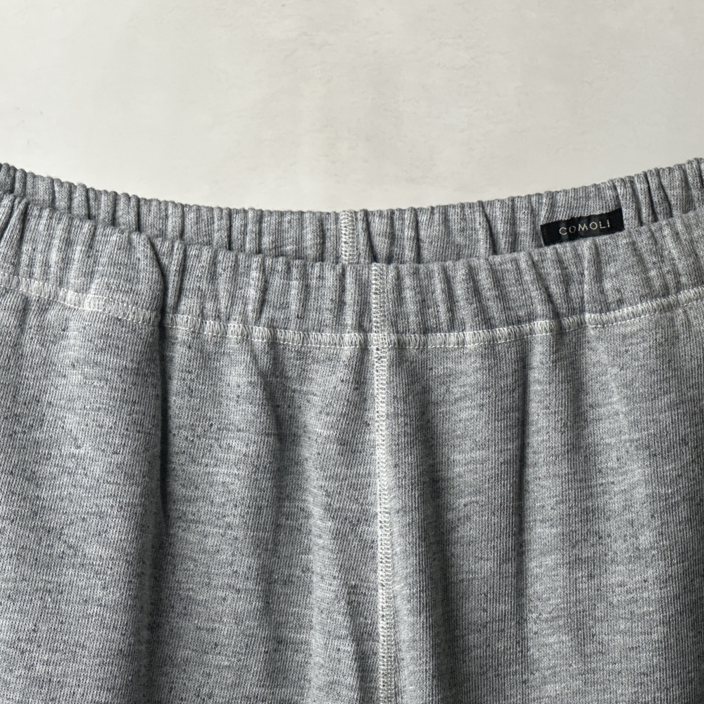 グレーカラーのスウェットパンツは久々の展開。クラシカルな濃班混じりの杢生地を採用し、着古したような粗さのある三種混紡の表地はかつて無いほど柔らかな生地感。甘編み気味に仕上げた裏地は肌に心地良く馴染み、コットンスウェットとは一味違う豊かなドレープ感も相まって、思わず心動かされる仕上がりです。LWコットンと同等の厚さで、かざせば透けるように柔らかく伸縮するしなやかな編み地。寒暖定まらぬ時期にふさわしい程良い保温性と通気性は、SSのみならずAWの気候にも十分対応できそうです。足元には COMOLI×GUIDI VS BACK ZIP BOOTS や FOOTWORKS ORIGINAL SANDALS を合わせて、リラックスしたムードの中に品性と力強さを感じさせるコーディネートを。
