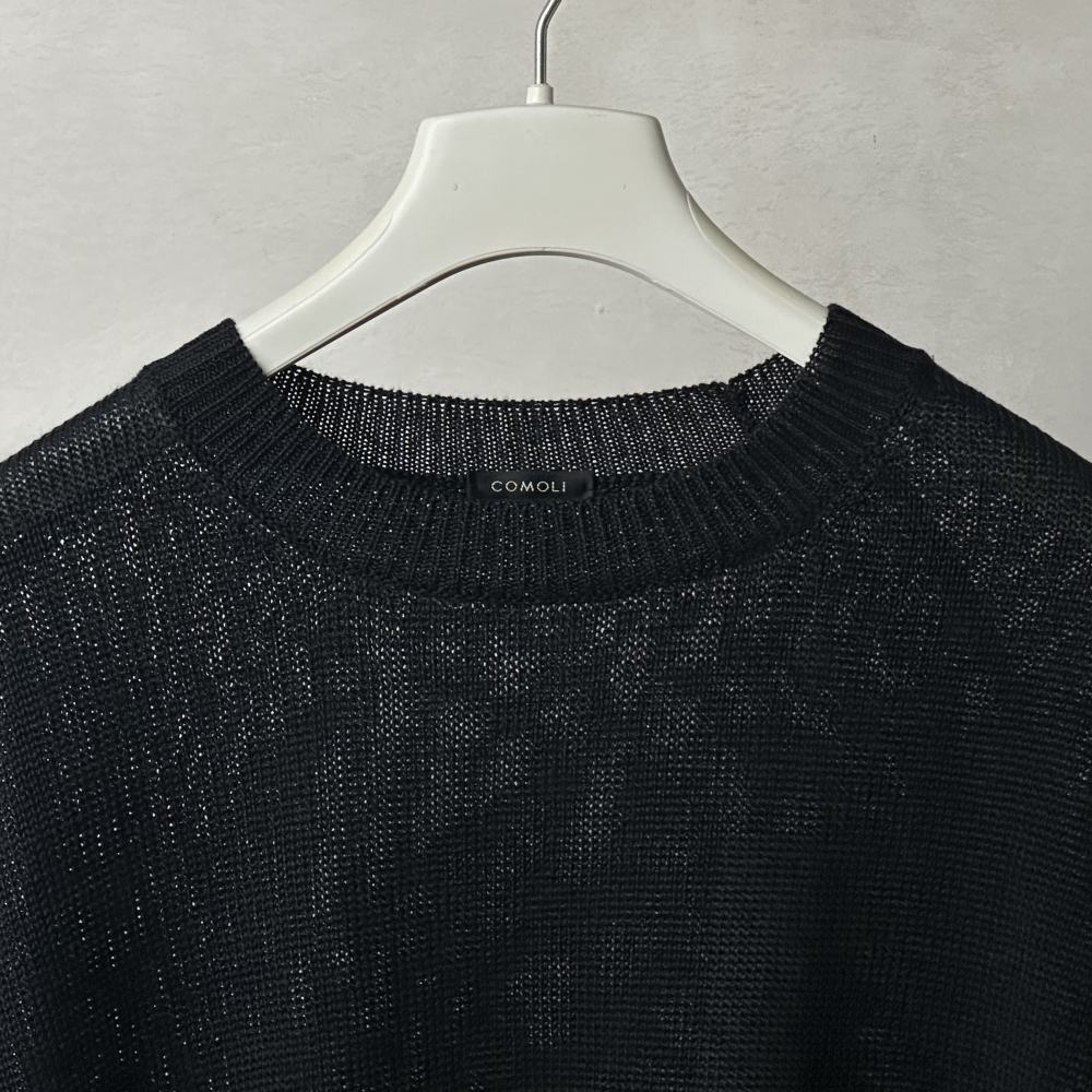 6月に着たいドライなクルーネックニット。リネン特有の艶と張りがあり、湿度が増す季節に好適な乾いた素材感。ラフなムードとさらりとした肌触りの快適さでSSシーズンの気分を高めてくれる仕上がりです。風通しの良いざっくりとした編み地は、着ていくうちに伸びが出て程良い抜け感を演出。カットソーのように単体で雰囲気を出せる気軽さ、袖をまくった姿も様になる使い勝手の良さも魅力的です。シンプルに太さのあるパンツに合わせてヘンプダックショルダーを肩掛けに。SSシーズンを彩るシルクコットンのような個性に相応しいインナーとしても。一枚あると着こなしに幅を出せる懐の広いアイテムです。